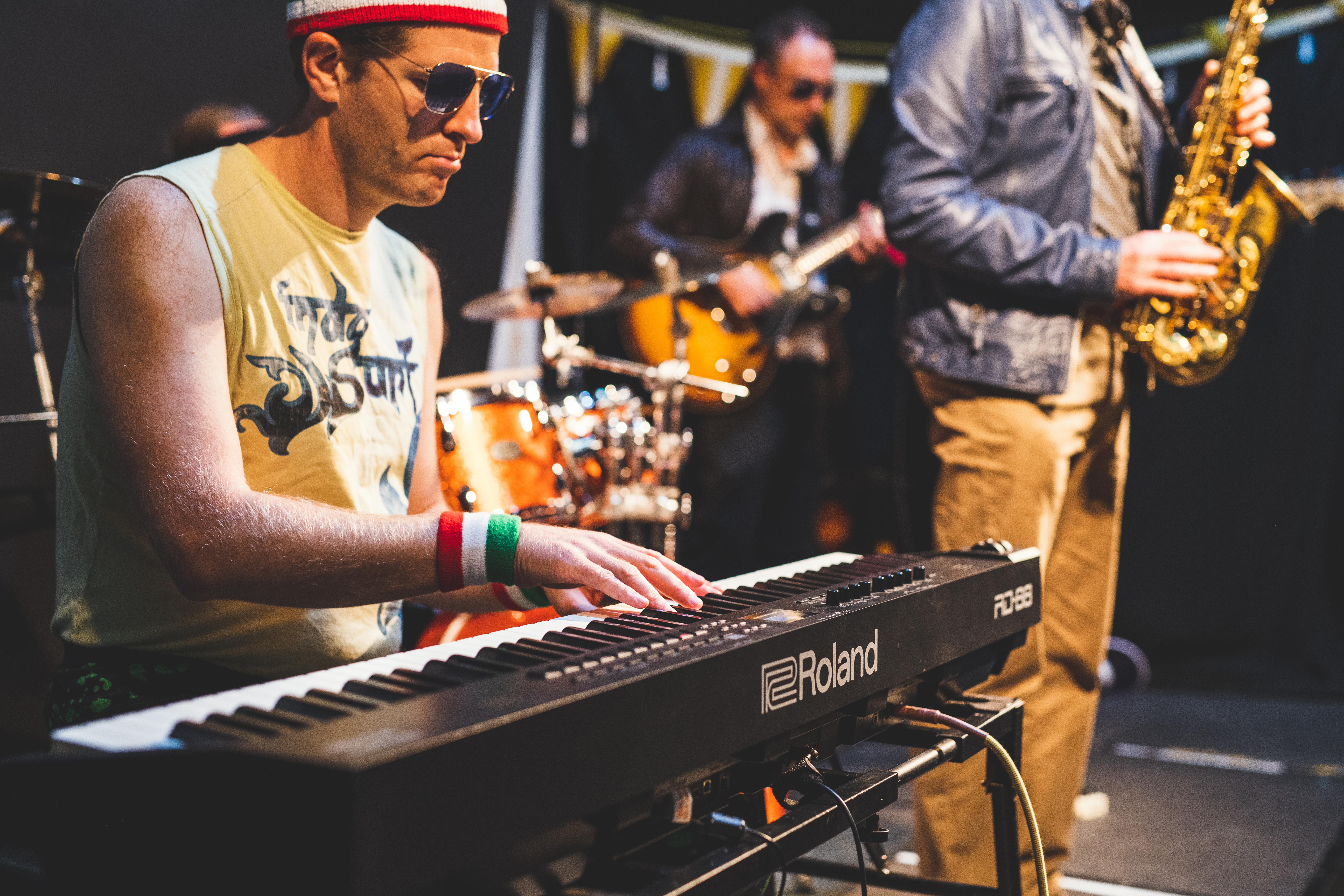 This band brings a slightly different line up including keyboards and vocal effects from Tom Ball, electric bass from Kevin Sanders, drums from Gary Evans and adding Jesse Molins on guitar to the mix (how can you play funk and jazz funk without a guitarist after all?). Neil is also experimenting with his own effects box too.